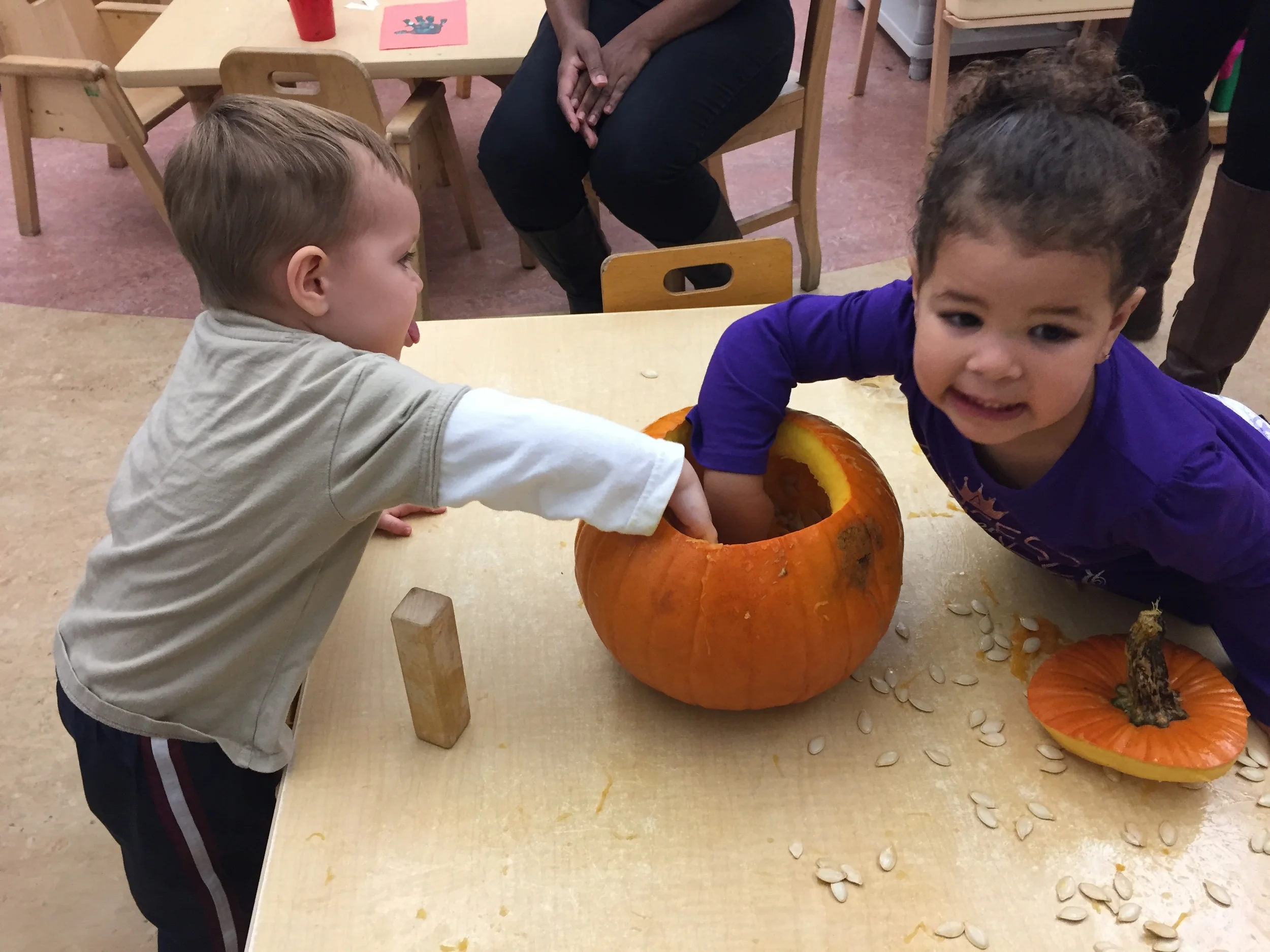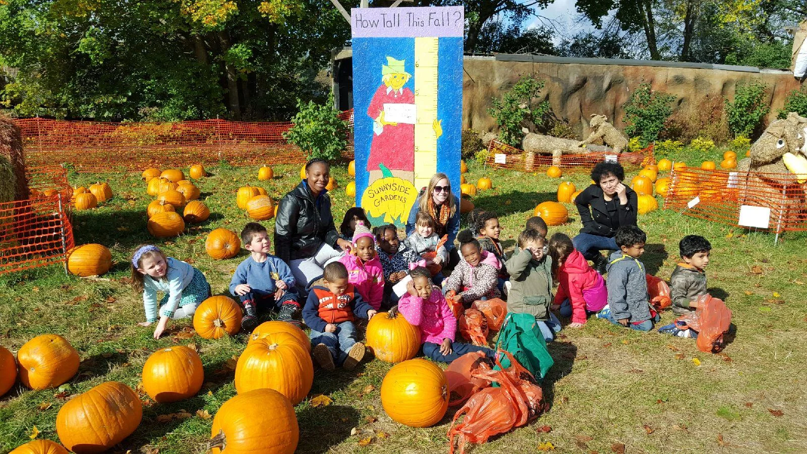 /The children of Camp Mighty Redwood and Camp Laurel Oak went on a field trip to Sunnyside Gardens earlier this month. They had a blast pumpkin picking, riding the train, and seeing the butterflies! They also brought pumpkins back for the other classrooms at Club Fed who have all had a great time exploring the pumpkin. They have seen and felt what's inside, baked pumpkin seeds and had them for snack, painted with pumpkin tops, made Jack-O-Laterns, and even done science experiments with the pumpkins! It has been a month long fun learning unit!