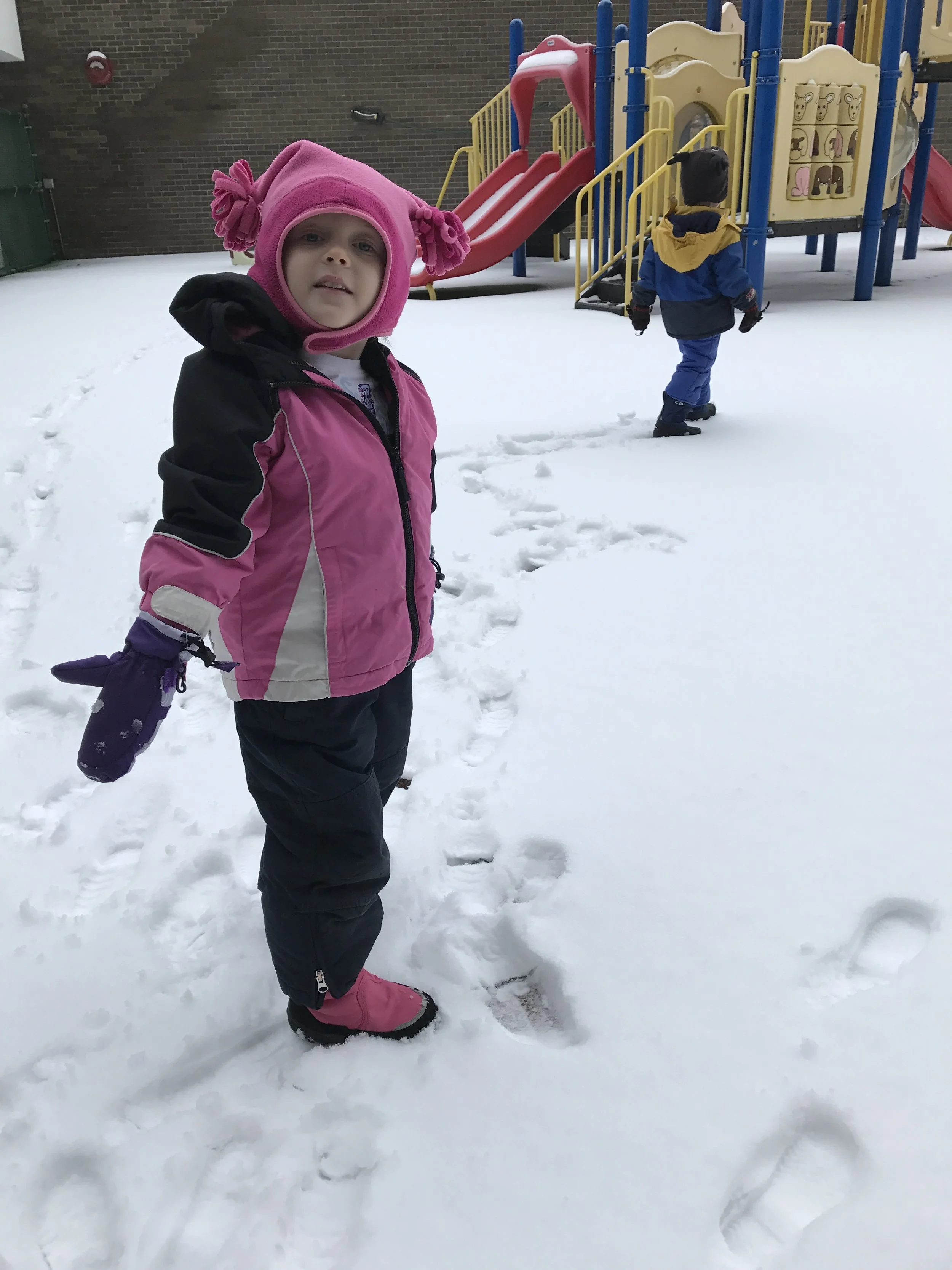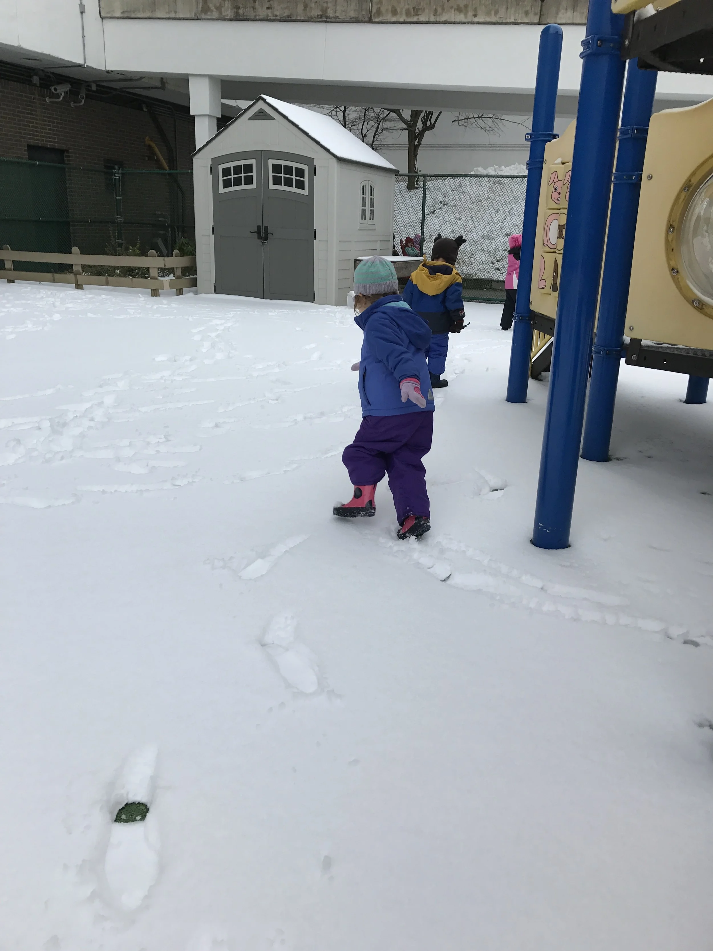 /Yesterday we were all bundled up and ready to go! The snow finally came down so we could play in the snow on our playground! Camp Mighty Redwood and Camp Laurel Oak had fun in the snow! Parents - please remember your snow gear as we get more snow so all the children can go out and play!