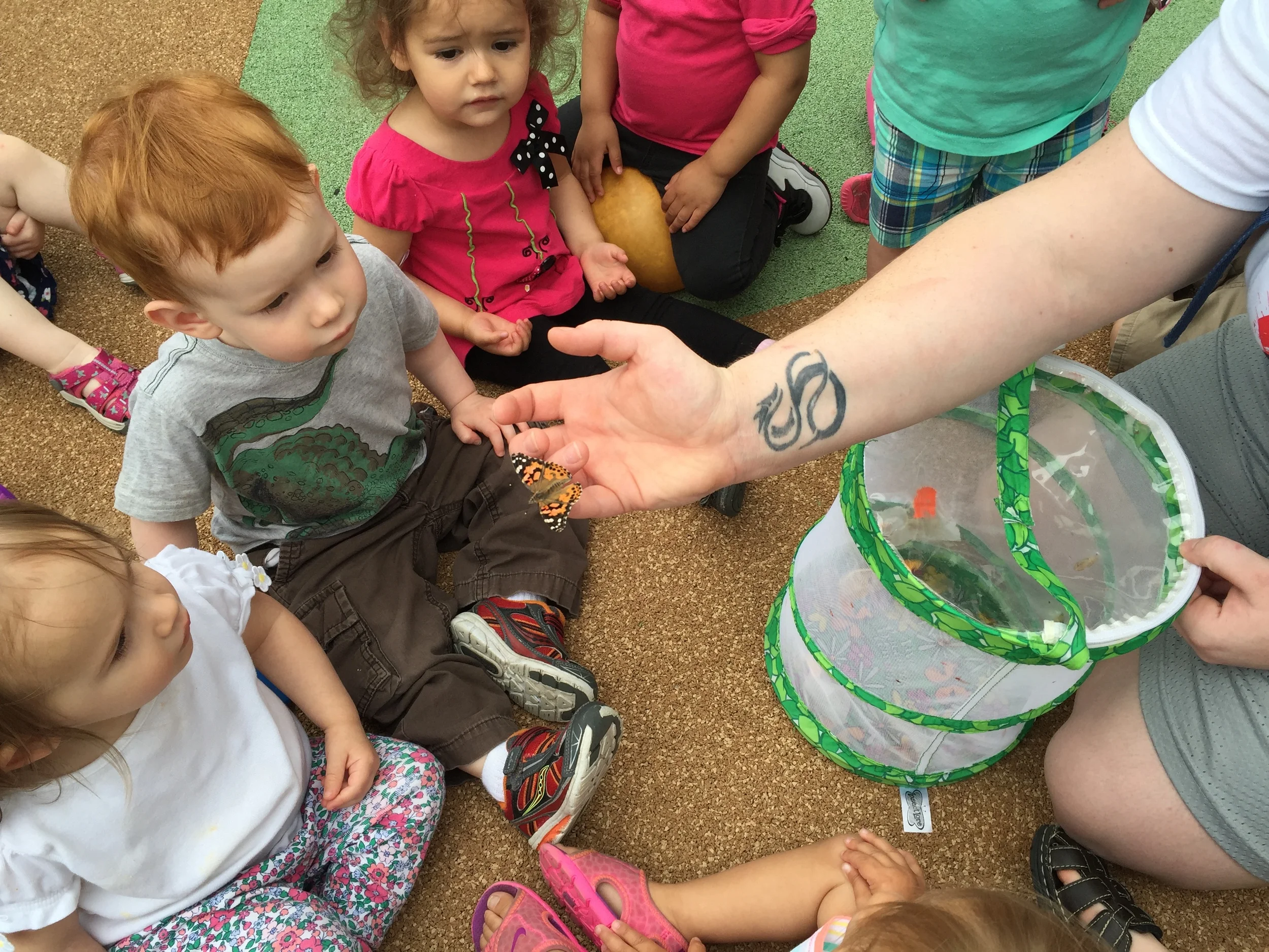 /Though we are still waiting for our chicks to hatch, we have begun to finish our life cycle unit at Club Fed. The children have learned much and had the opportunity to not only talk about life cycles but also watch them first hand. The caterpillars, then chrysalis, and finally the butterflies have been a part of our classroom for many weeks. It was finally time to release the butterflies back into their home environment, so the children helped the teachers with this. It was sad to see them go but fun to have been able to enjoy them and learn so much about them!